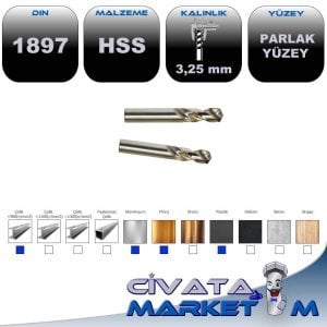 HSS KISA MATKAP UCU DIN 1897 3.25 mm