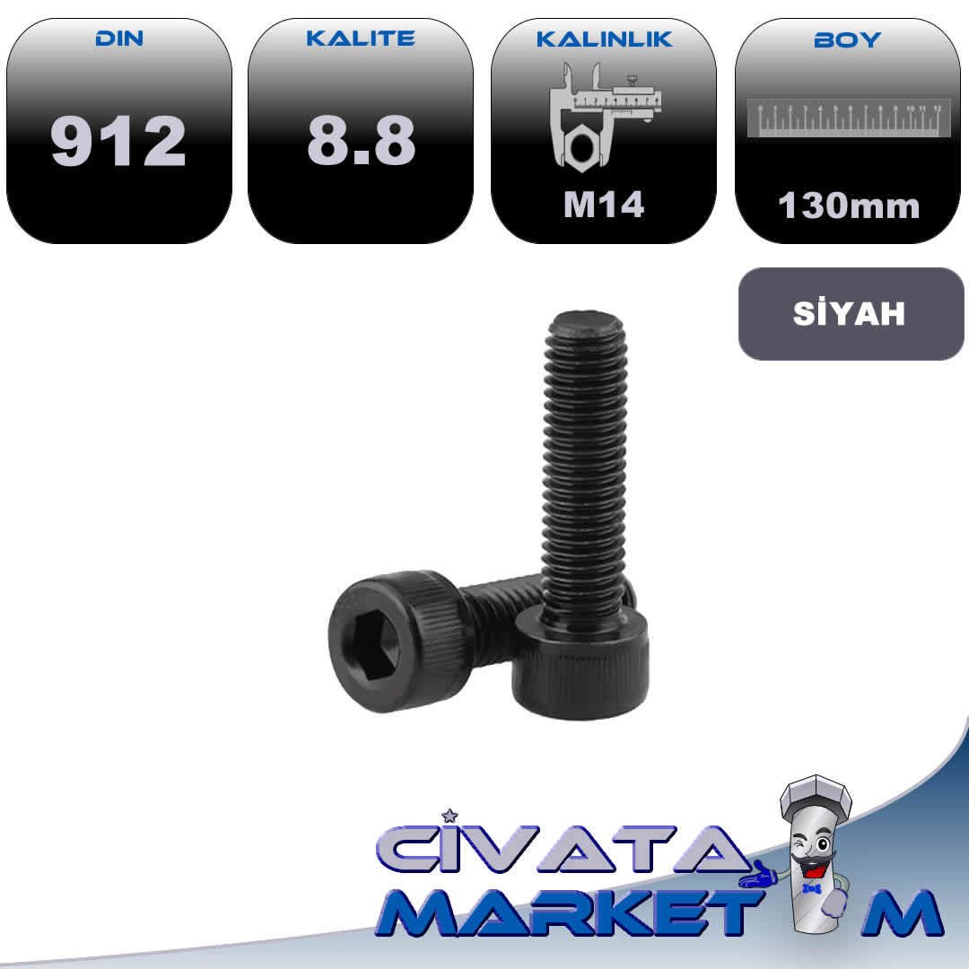 M14*130 İMBUS CİVATA SİYAH 8.8