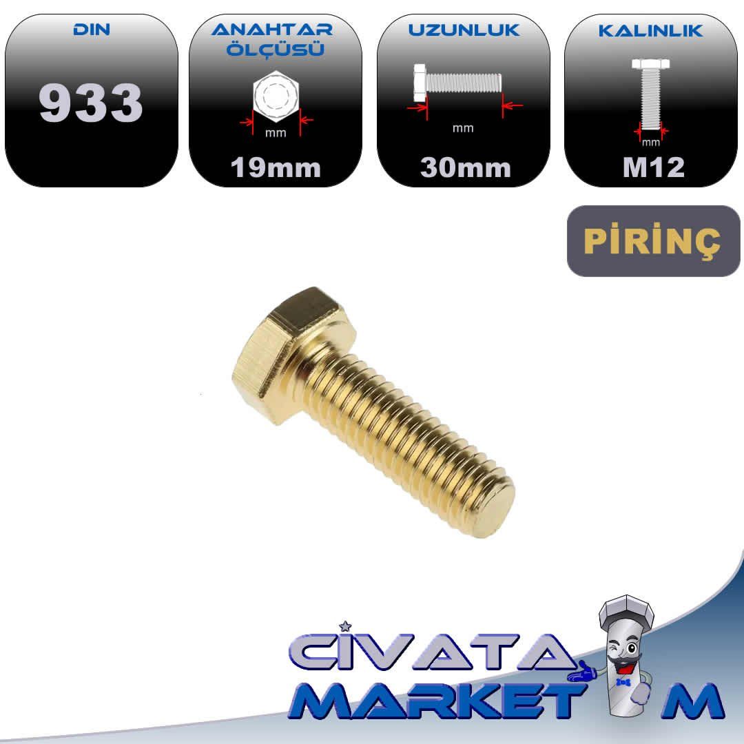 PİRİNÇ M12x30 AKB CIVATA DIN933