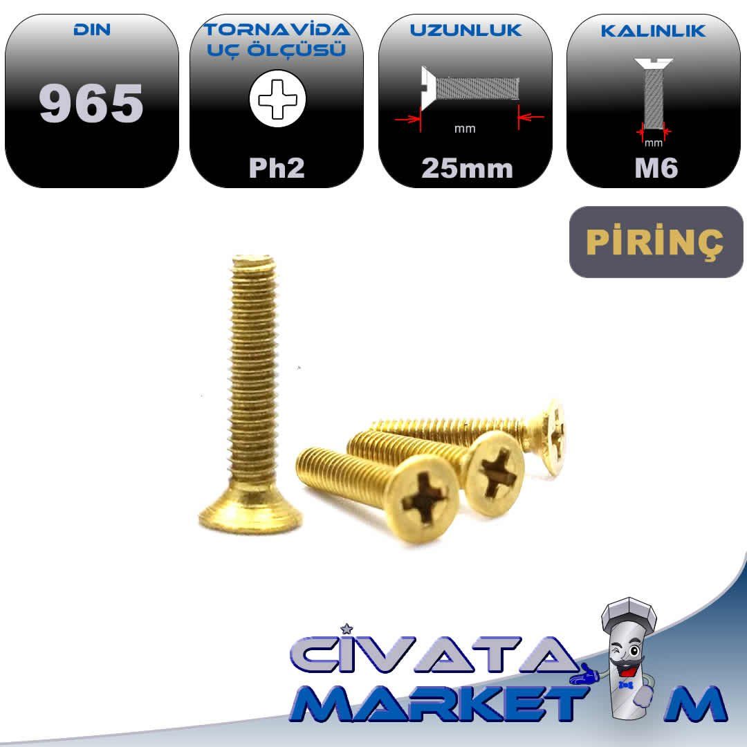 PİRİNÇ M6x25 YILDIZ HB(Havşa Baş) Vida DIN965